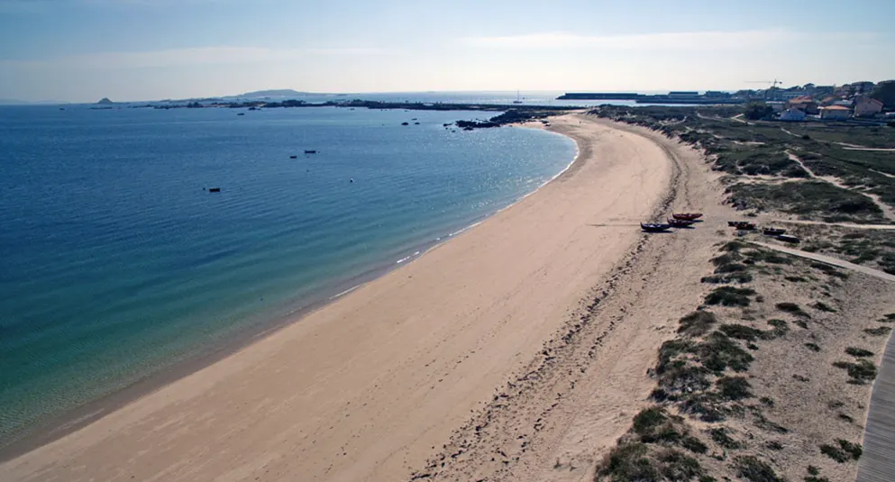 Situada en Santa Uxía de Ribeira, esta tranquila playa cuenta con una amplia extensión desde el puerto náutico hasta la punta de Coroso, con un fantástico paseo marítimo y vistas a Ribeira.