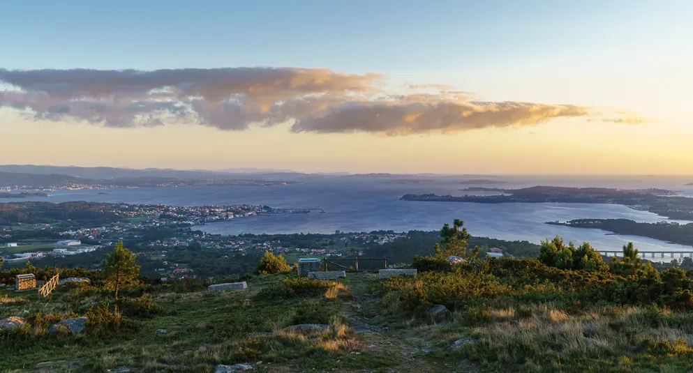 Con vistas a la Ría de Arousa y al valle del Barbanza. Este mirador es un lugar tranquilo para disfrutar de la panorámica del paisaje gallego.